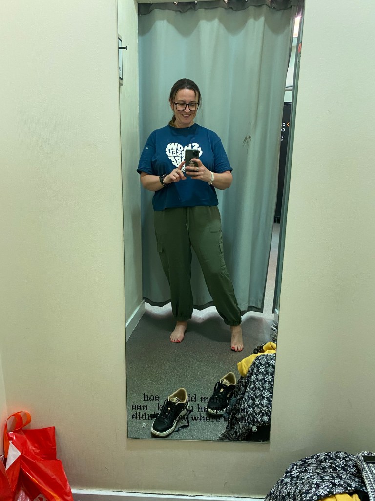 I was sitting on a little munchkin seat! she messaged me at work today to tell me that her hair was a mess. I walked out a changing room in tkmaxx expecting some monster… and there she was sitting outside the changing room looking all smart , thin and lovely!!
