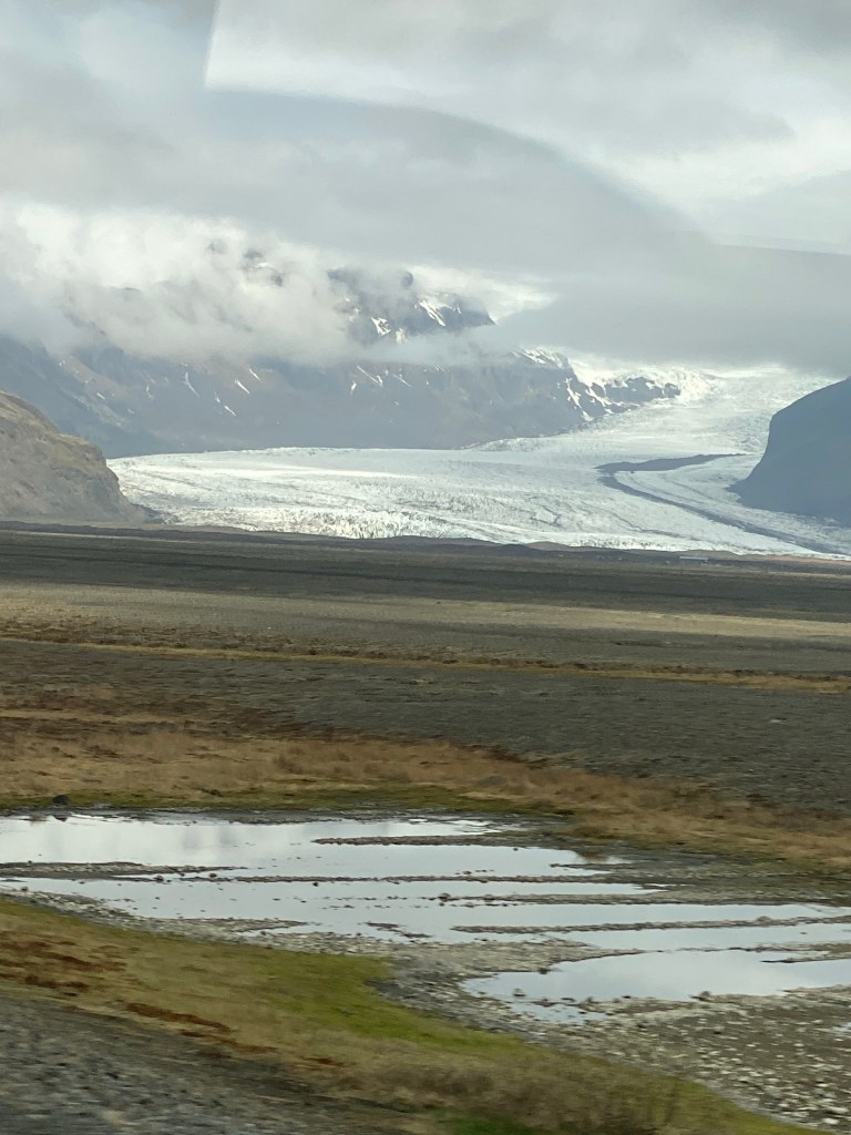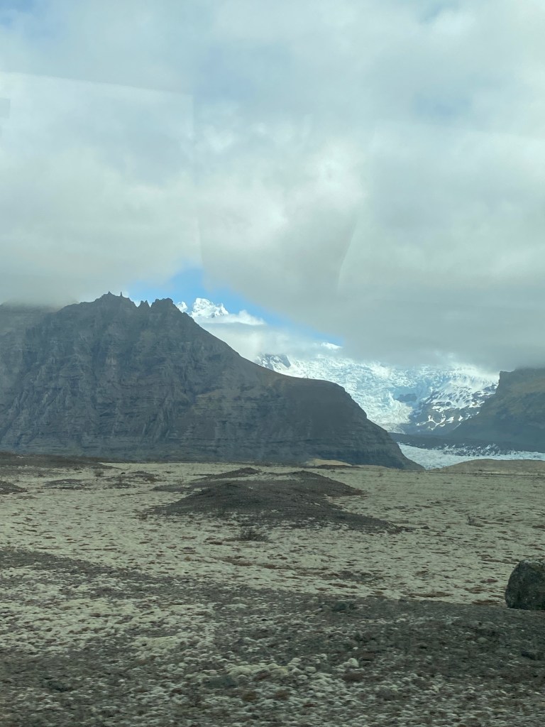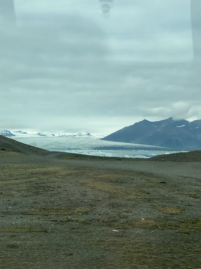 Then we near closer to the glaciers and you can see them in the distance from the bus. We must pass about 10 along the way until we get to the Glacier Lagoon.