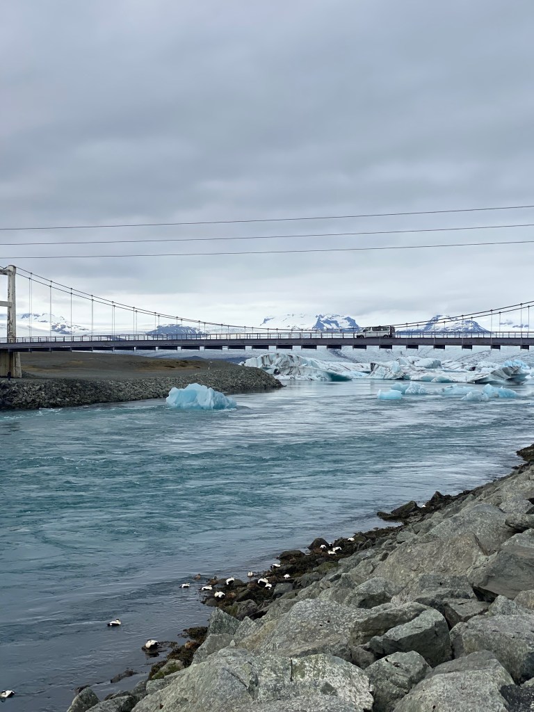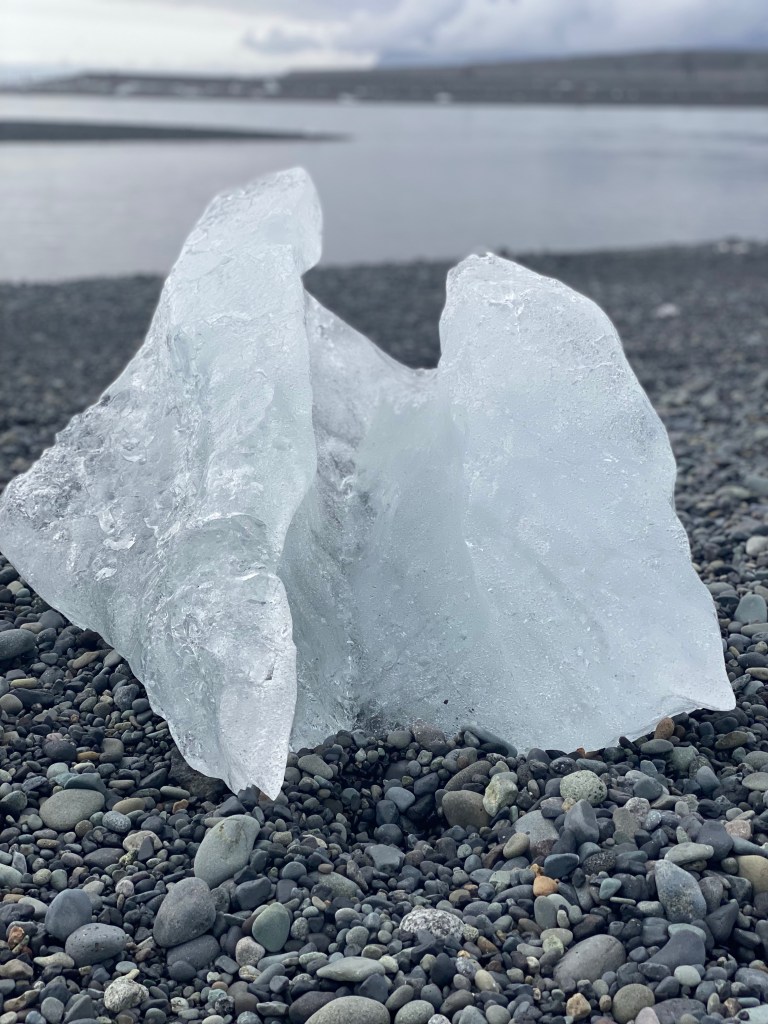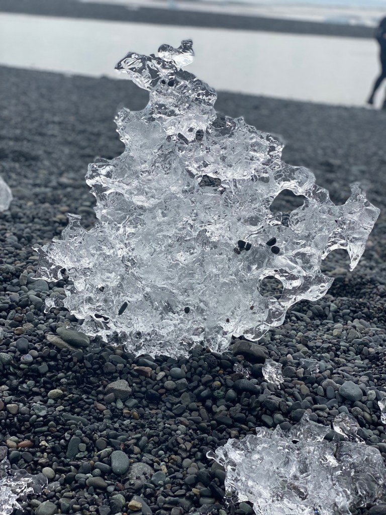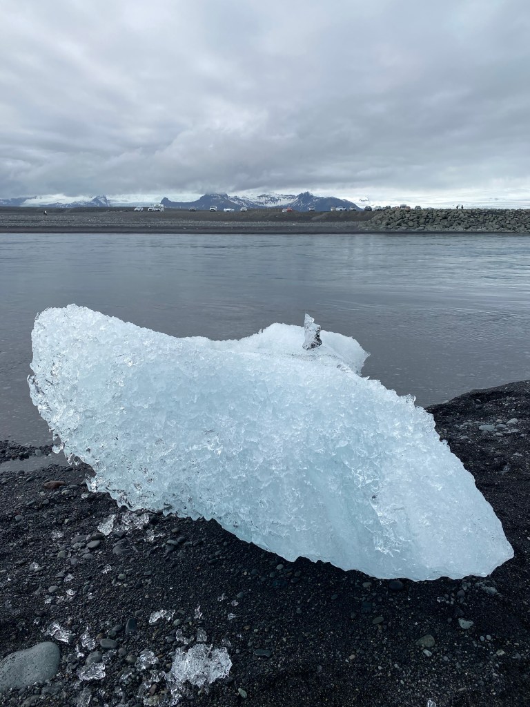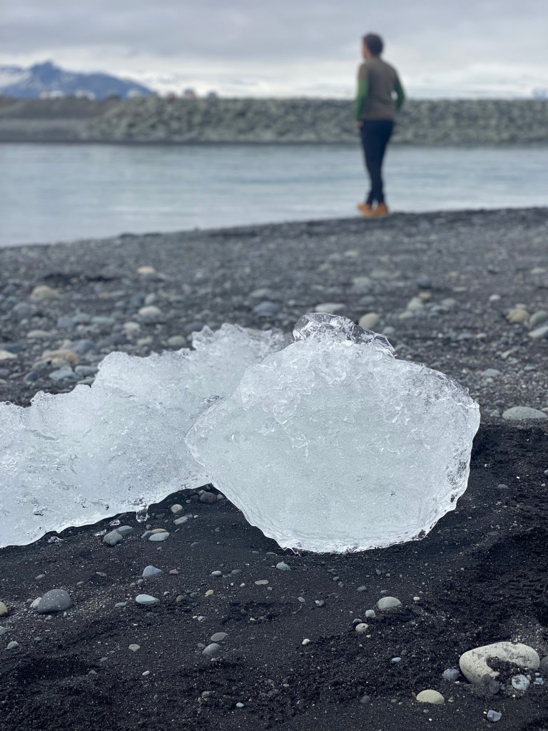 We head to Diamond Beach first. It’s a purely blank Sandy beach, from all the volcanic activity but the Glacier breaks off into a lagoon which was only formed in 1930 and has continued to grow with the amount of melting ice. These icebergs break off and flow down into the sea.