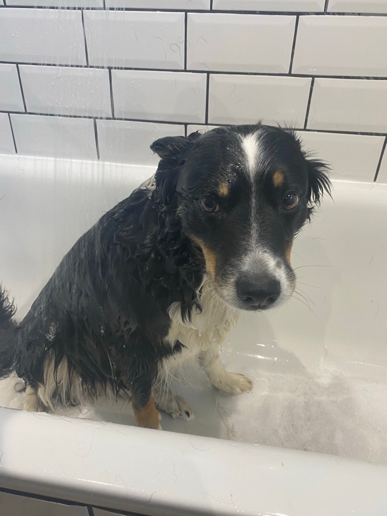 She who wants to bit the shower spray any chance she gets, is surprisingly traumatised by being washed! Then Bhru… she looks like she’s smiling but I think she thought she could get out the bath via the taps… she’d planned an escape 😂