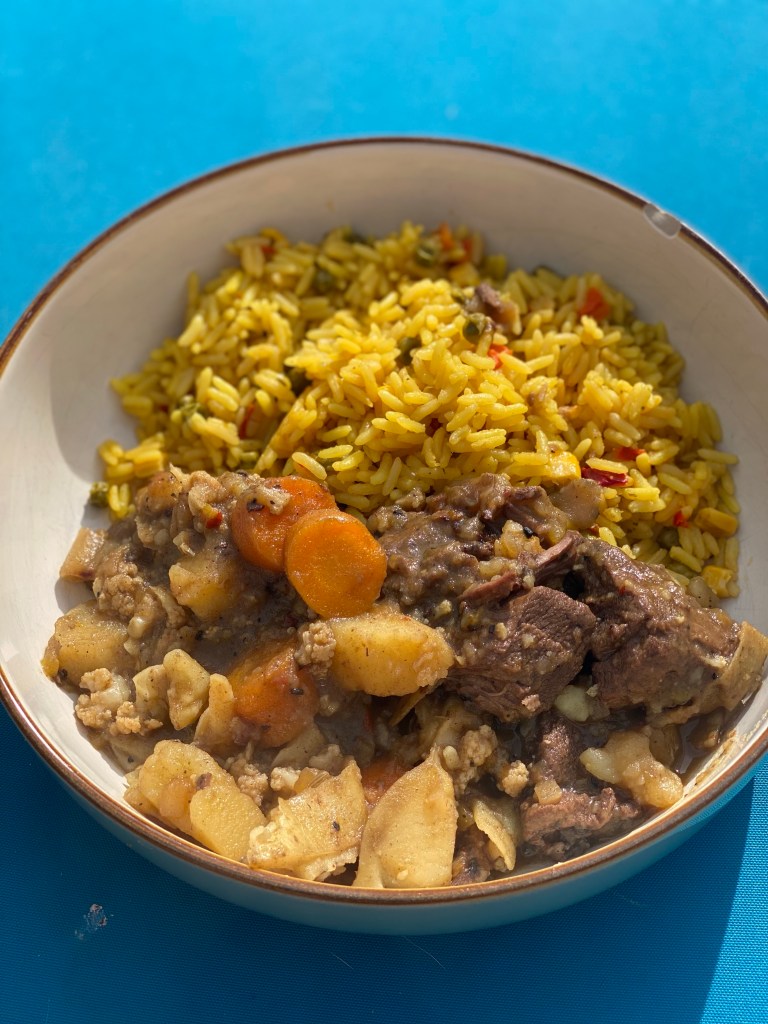 Craig did very well for his first South African potjie…. Or as close as we can get to it! The “rules” say it’s not to be stirred but we stirred ours….. ours I have a cheek… I stirred Craig’s 🤦🏻♀️😂. There’s lots of seasoning in it that we bought from Amazon. The meat is browned with the onions and them the veg layered on top. He made enough for 6 people. Guess what’s we’re having for the next few days?!?