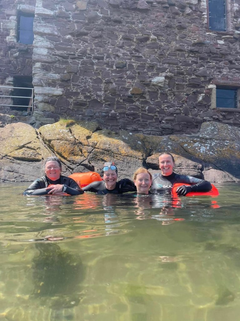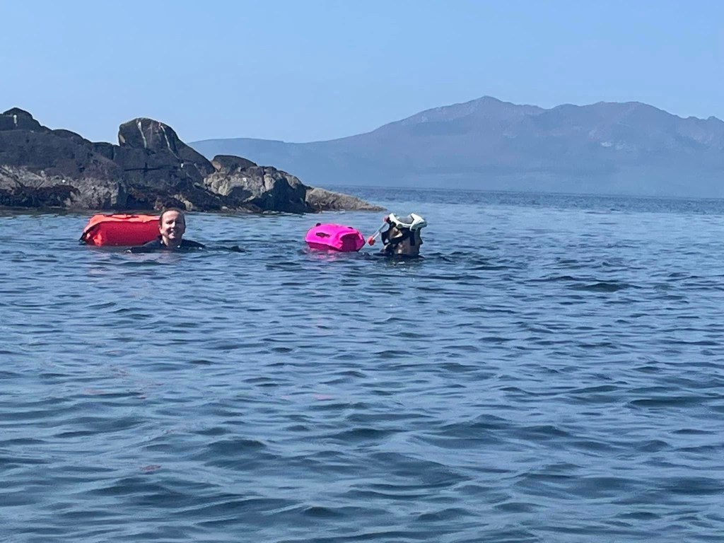 I go swimming with Ellison from Tartan Campers and her sister Eileen who has been doing it for years so knows her stuff! We also met Chantal and Lesley today (they are really good swimmers so they were off for a good two kilometre swim).