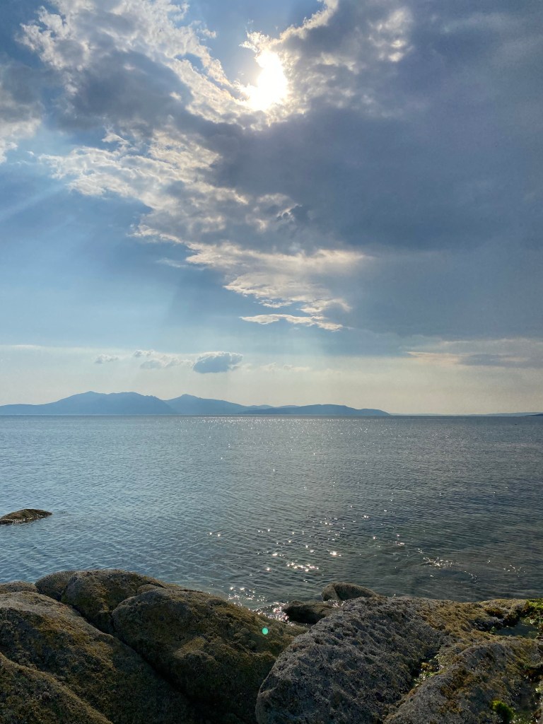 I’m sitting out on the rocks at Portencross again and it’s just out of this world. I feel like I just popped over to Greece for the evening! there is actually a heat haze over the sea!