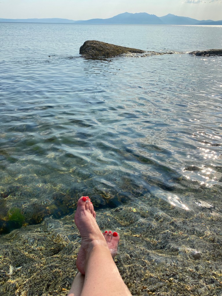 I went to the supermarket in Stevenson and got some salad for my dinner and I ate that with my toes in the water. Honestly I can’t manage more than 10 seconds at a time because of the cold.