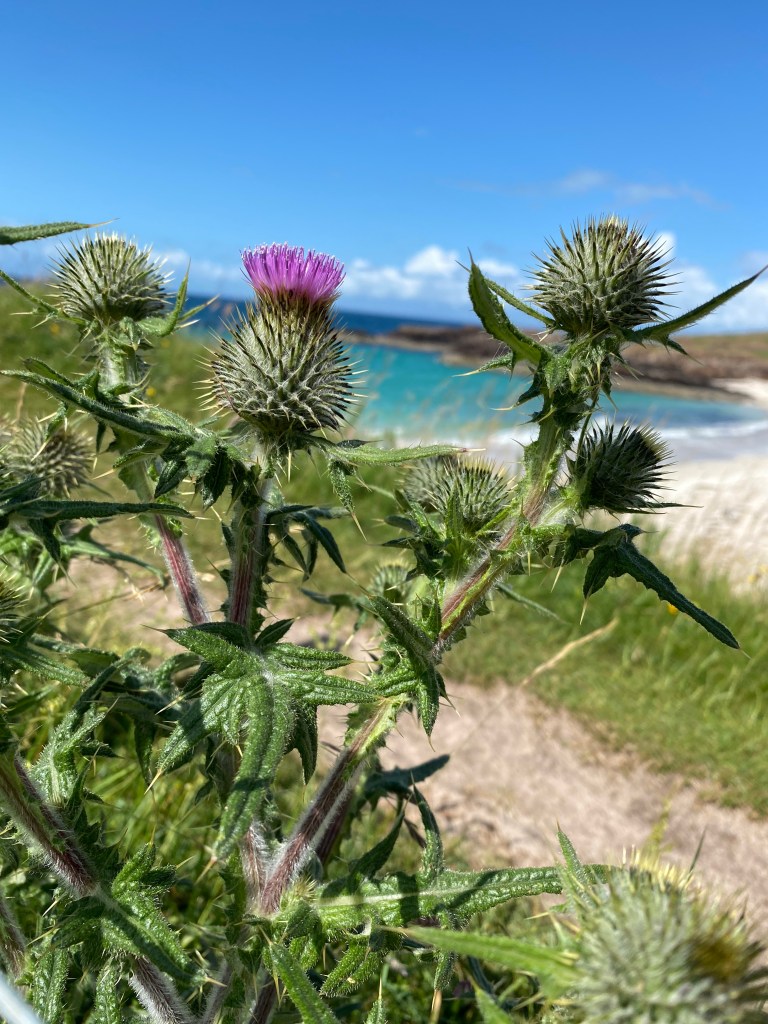 And there were jellyfish EVERYWHERE. All different colours, shapes and sizes. Now I know that many of them are no bother, whatsoever, when you are wearing a wetsuit, but sadly that seemed irrelevant at the time. I’m still putting my face in and snorkelling. Plus the wind is coming from the west bringing them all into the beach. I’m gutted to say I got spooked after only a few minutes of snorkelling. I saw two Lion’s Mane Jellyfish almost straight away. The sea was teeming with them. I admit to feeling marginally relieved when a couple and their son came down for a swim, fully suited up, and decided against it. Their son was at Uni studying Marine Biology and reported back that a good few of the jellyfish 🪼 were the poisonous ones.