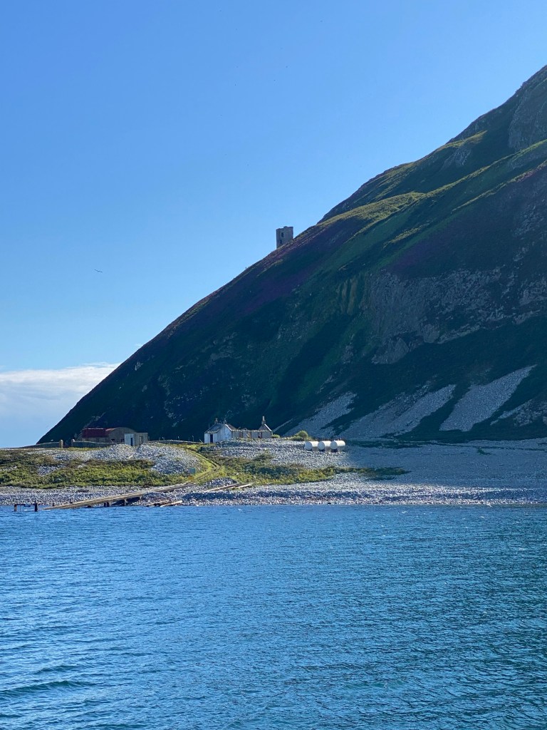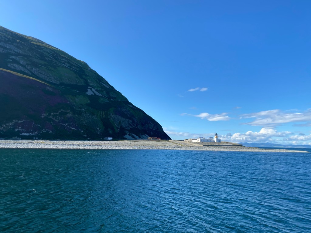 The lighthouse and cottage are at the base of the same side. In the back of this photo you can see the Isle of Arran mountains… if you really really zoom in!