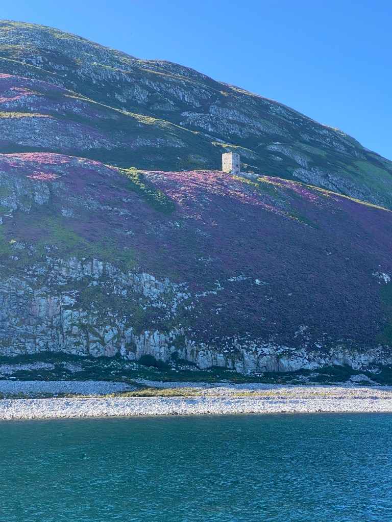 This is the castle perched on the side facing Girvan. The heather is so pretty in full purple bloom.