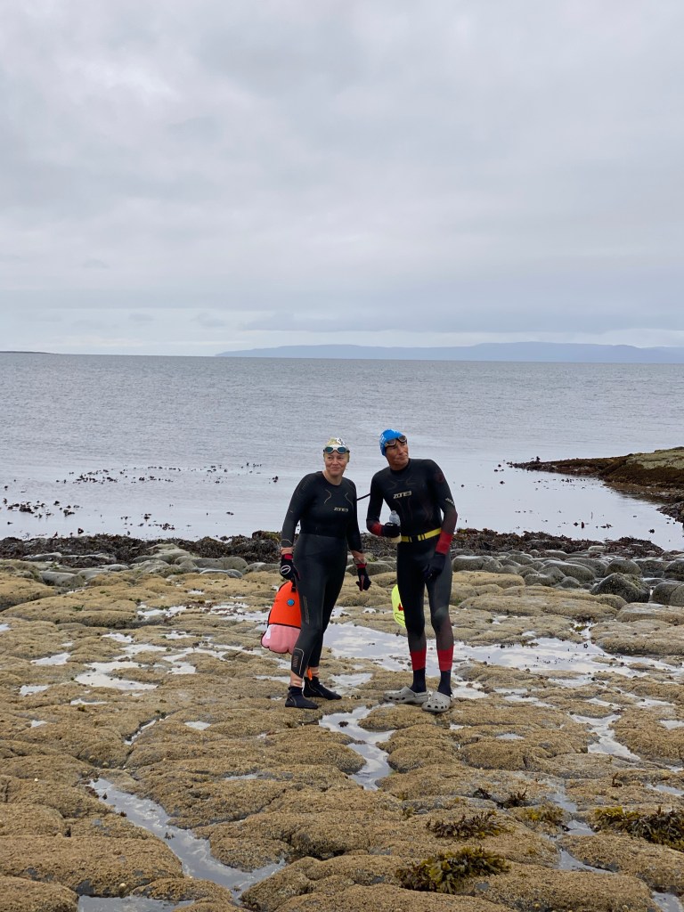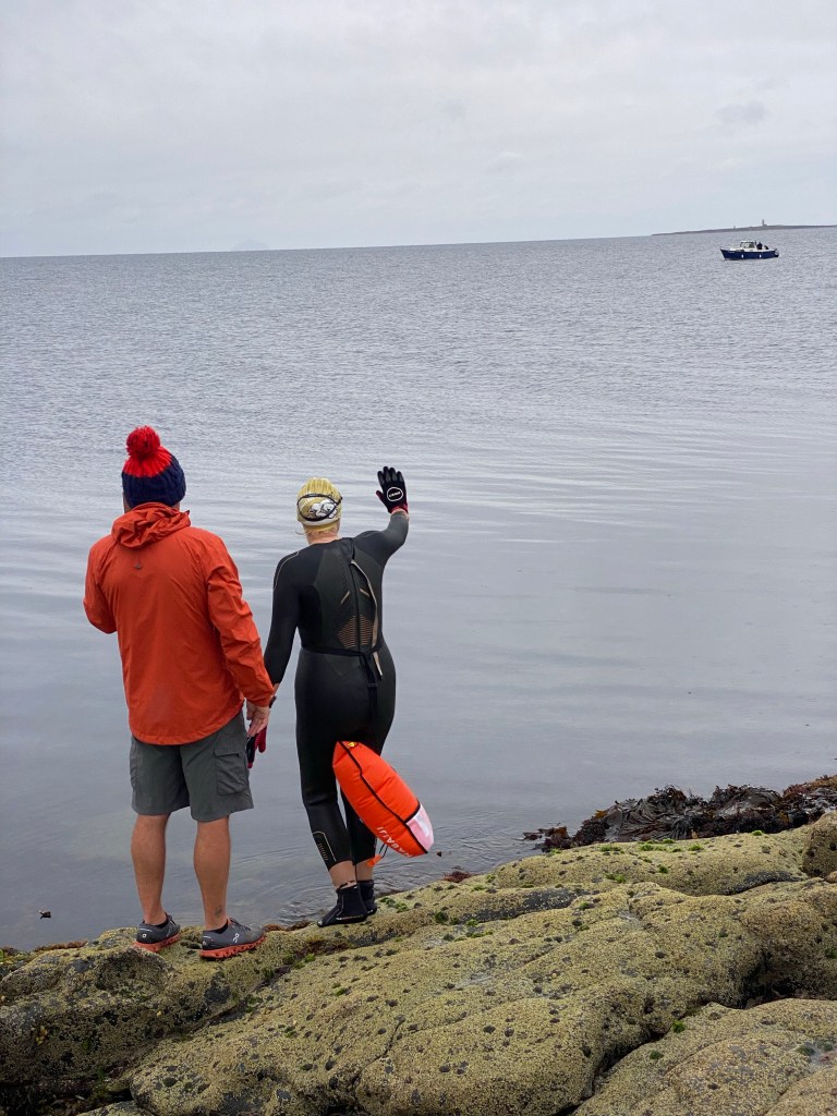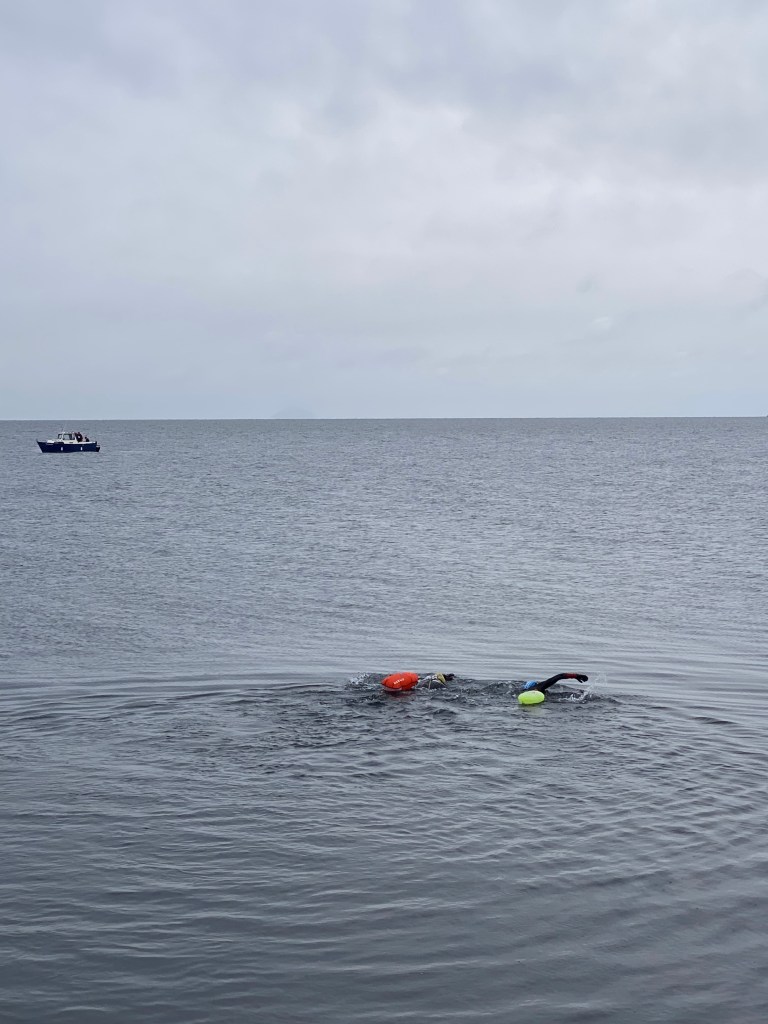 I was up at 6am as I was heading to Ballast Bank in Troon. A very inspirational lady I know was swimming from Ballast Bank out to Lady Isle and back to raise money for River Garden Auchencruive. They do amazing work helping people to free themselves of addiction to drink and drugs. Chantal very sadly lost her partner to addiction a few years ago. She’s been talking about doing this since I met her swimming with Ellison and Eileen.