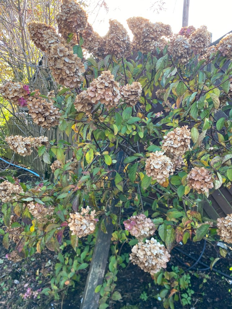 I then went outside and poop scooped and dead headed the beautiful hydrangea!
