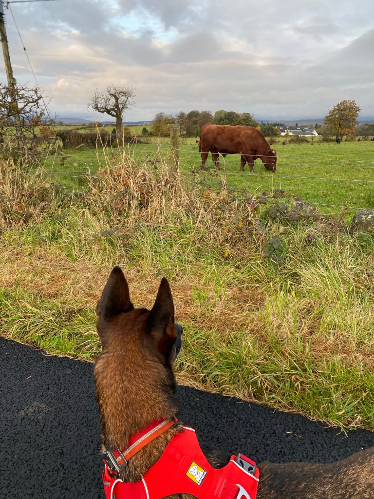 Khaleesi is still fascinated by the cows! This big bull was staring at her too but the moment had passed by the time I got my phone out!