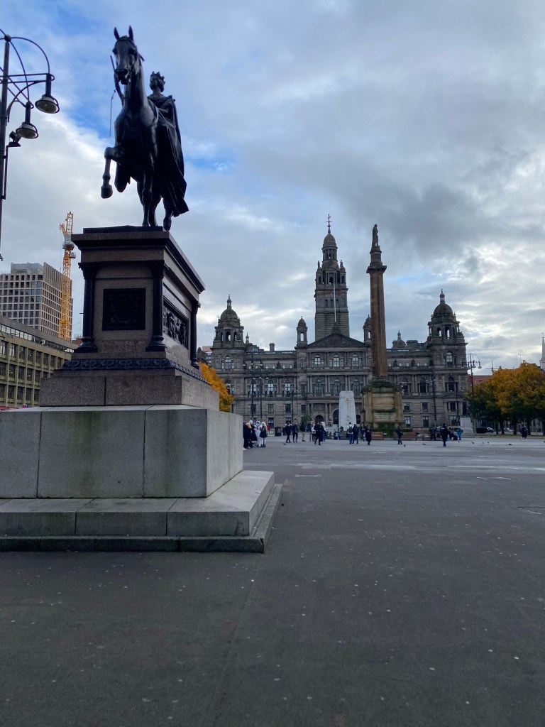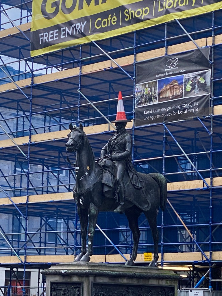 Here’s our famous Duke of Wellington statue with its traffic cone! A symbol of the humour of Glasgow. Every time they take it down, someone else puts it back up so I think it’s finally here to stay! (Shame about the scaffolding!)