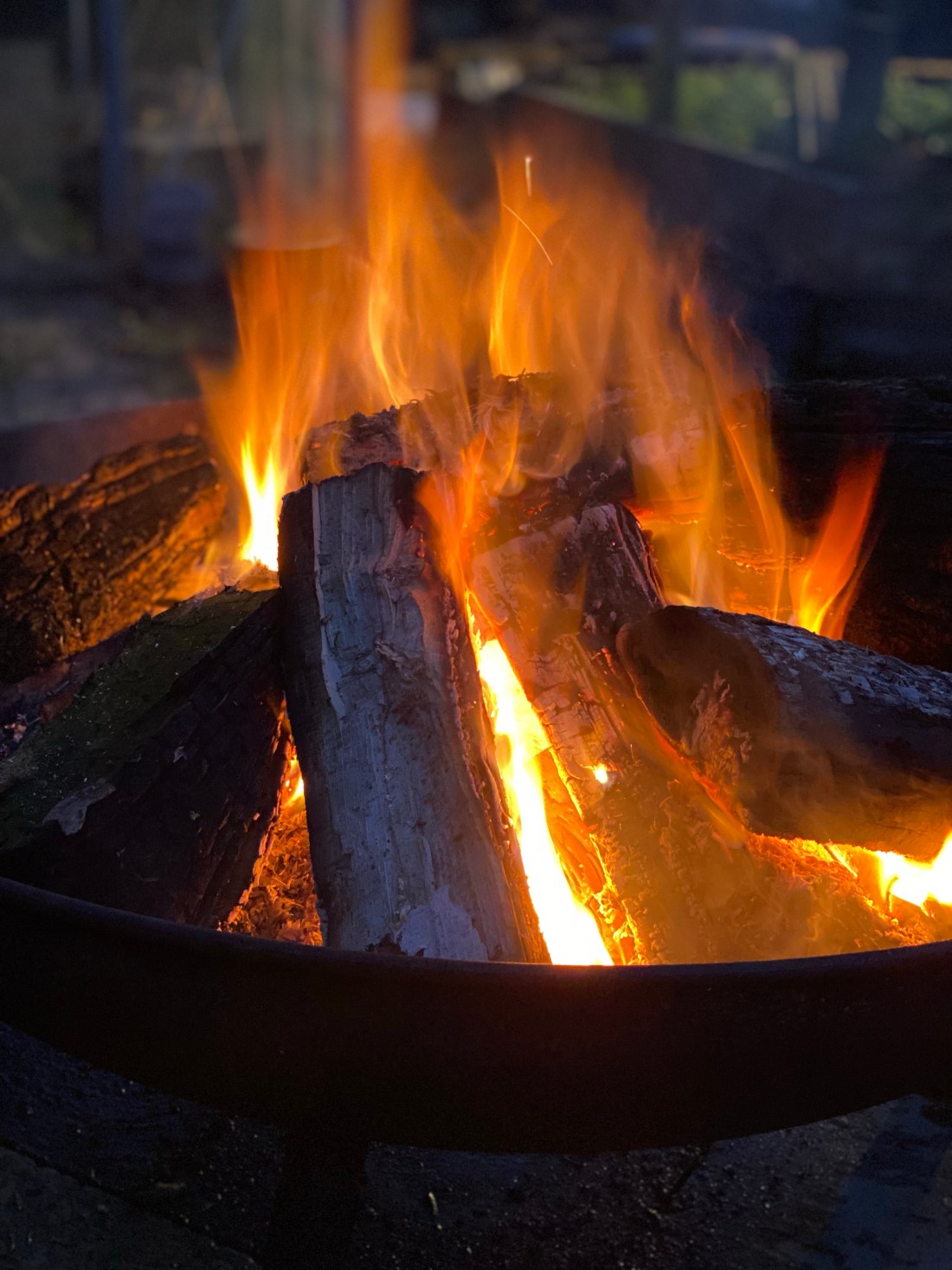 By that time Craig had a fire going in the fire pit outside. It’s a lovely peaceful evening. It’s cold but not next to the fire.