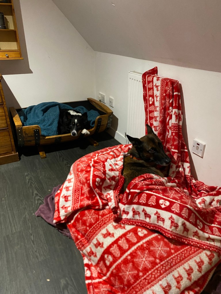 Calaidh seems to be under her blanket rather than on it…