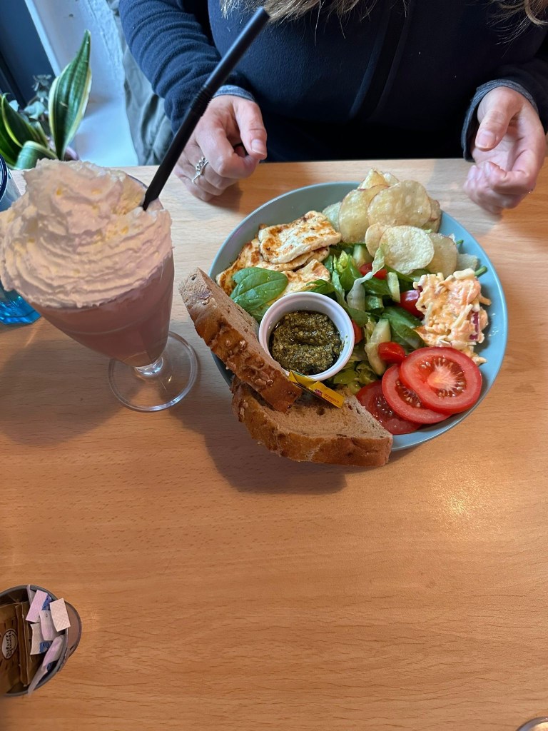 I had a lovely halloumi and pesto salad. It’s been ages since I had salad.
