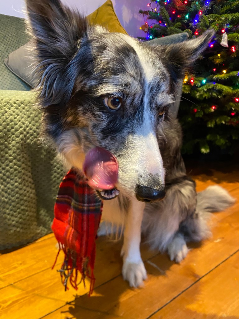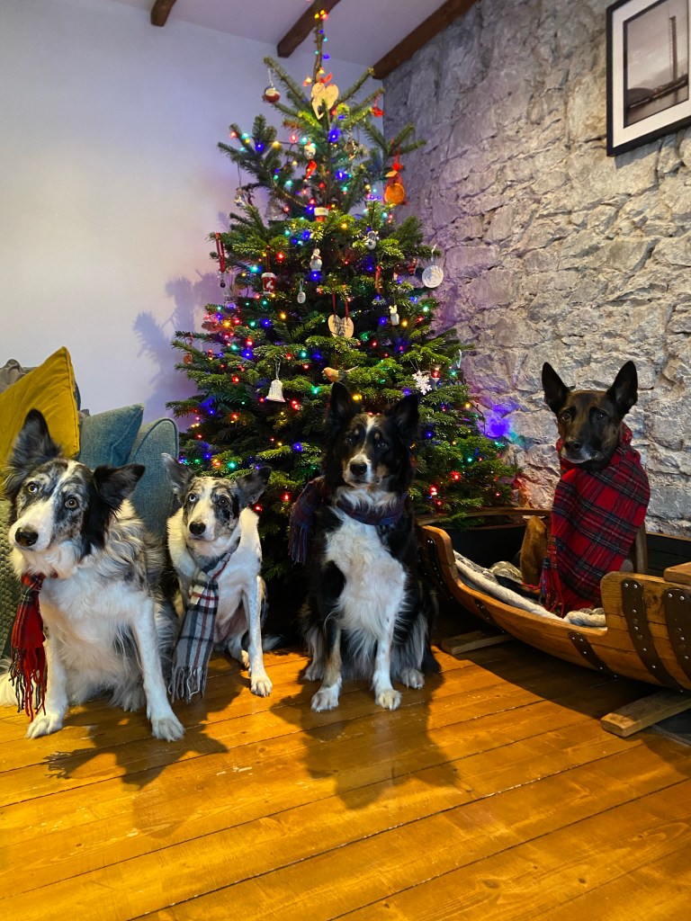As challenging as it is to get 3 dogs wearing scarves, in front of the Christmas tree…. Try 4!!!