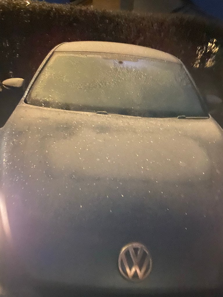 The car was frosted solid, if that’s even a thing?! It took me at least 10 minutes of scraping before I got it cleared. Made it to work with 4 minutes to spare.