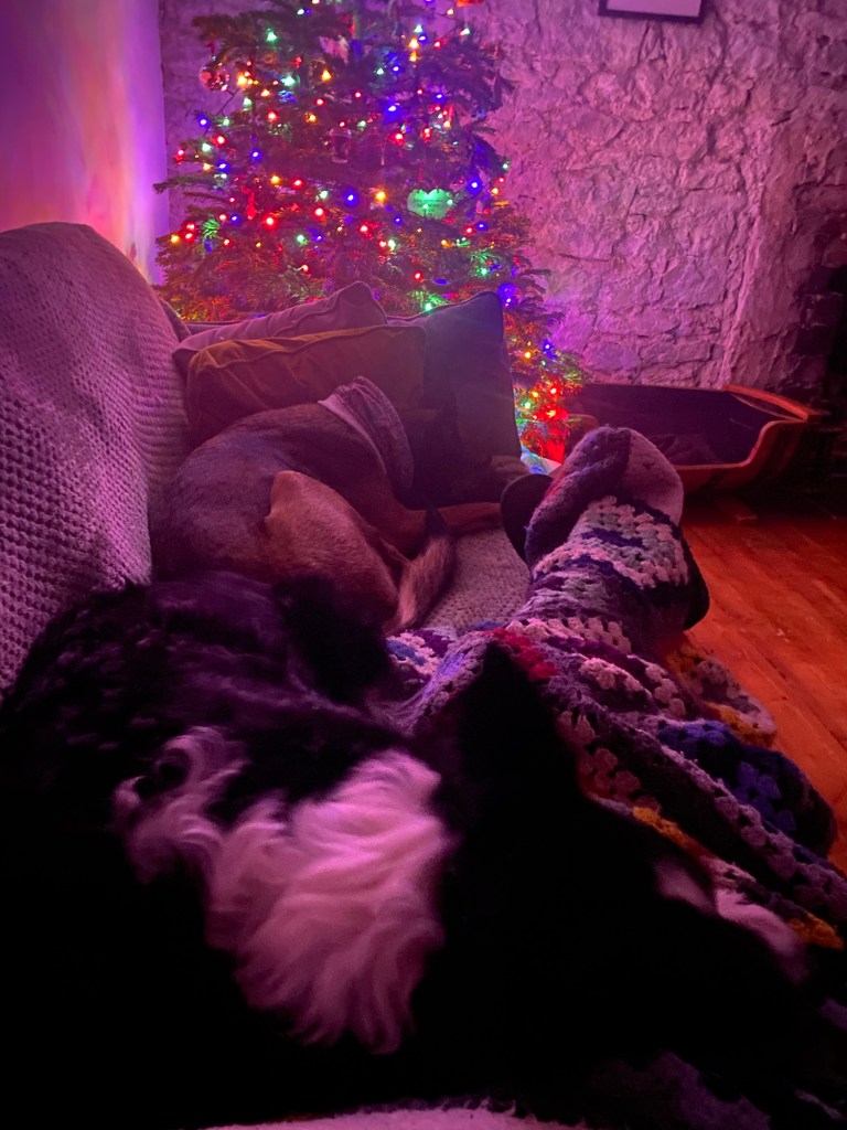 I came downstairs and lay on the couch with the dogs curled up on me and at my feet.