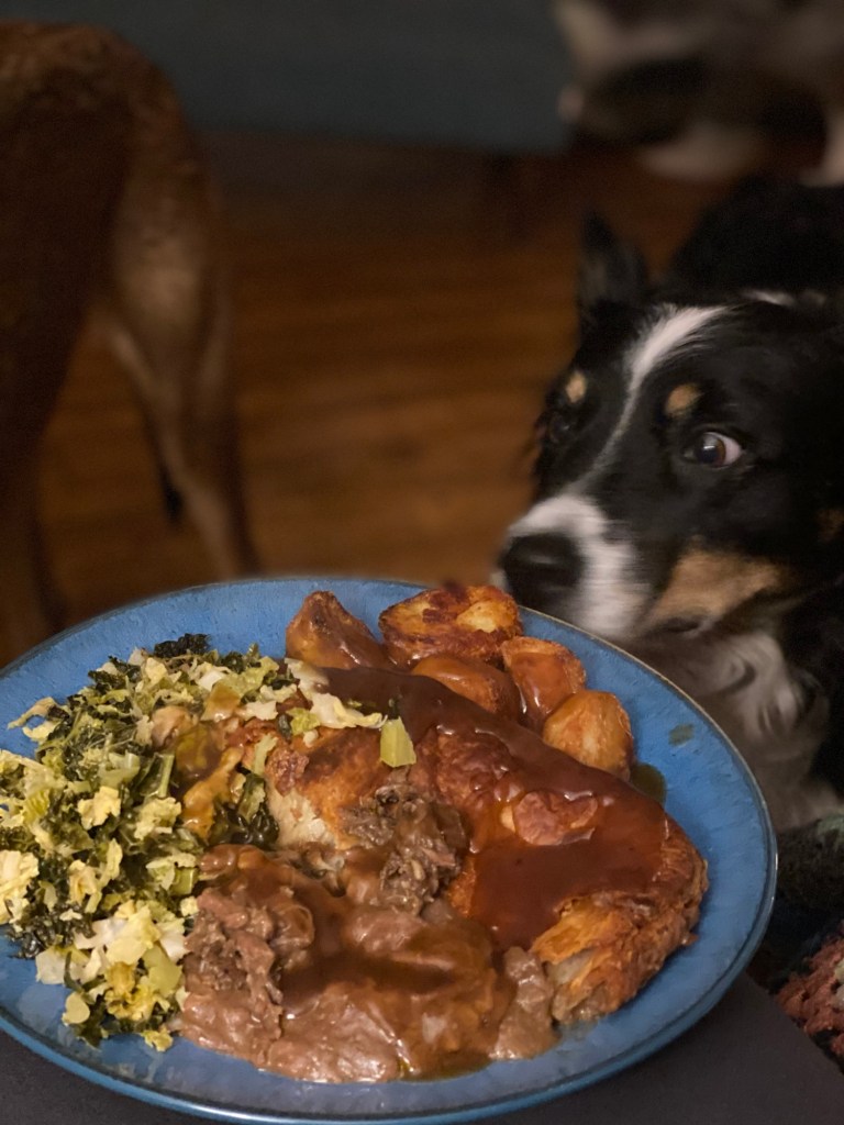 A mahoosive plateful…. Calaidh’s eyes say it all! When there’s two of you, you share a steak pie…. I’m not sure how it would be enough for 4 people. It was super tasty but way too much pastry.