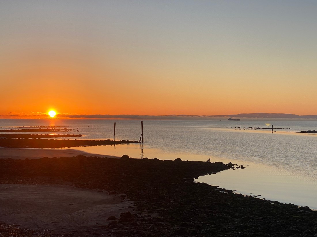 TEN MINUTES later Gro called and we had to rush back!! There’s a bank of cloud running along the base of Arran so I think the actual sunset would have been stunning but we had to head back.