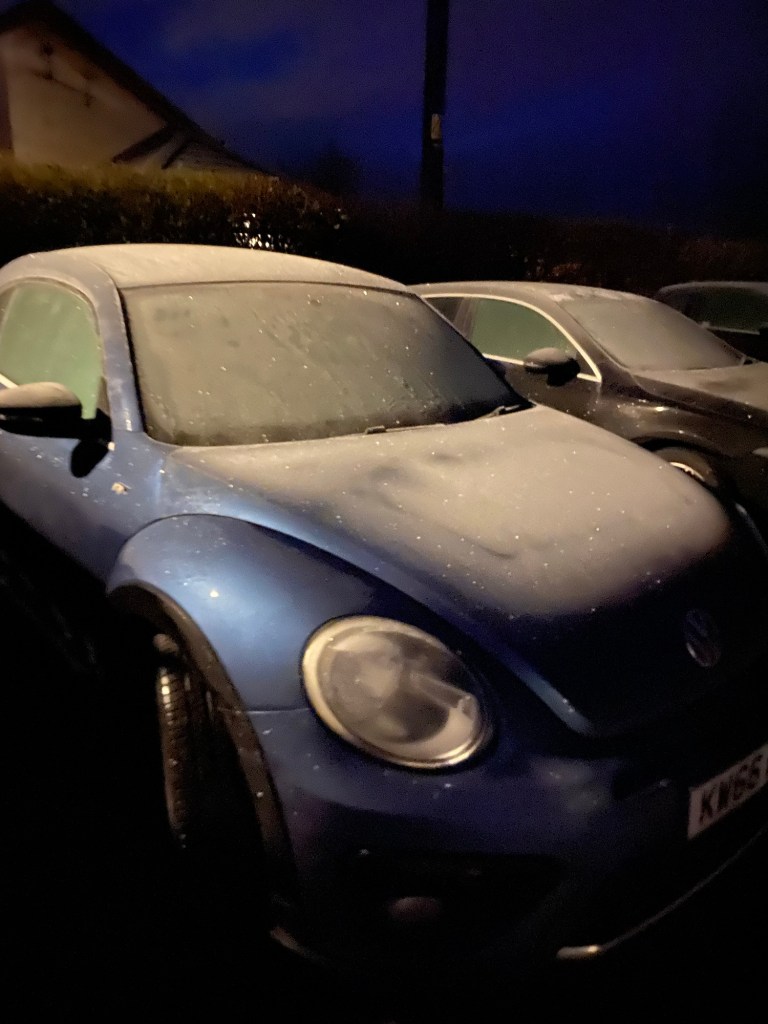 This is Craig’s windscreen this morning., his car hadn’t been out since Saturday lunch.