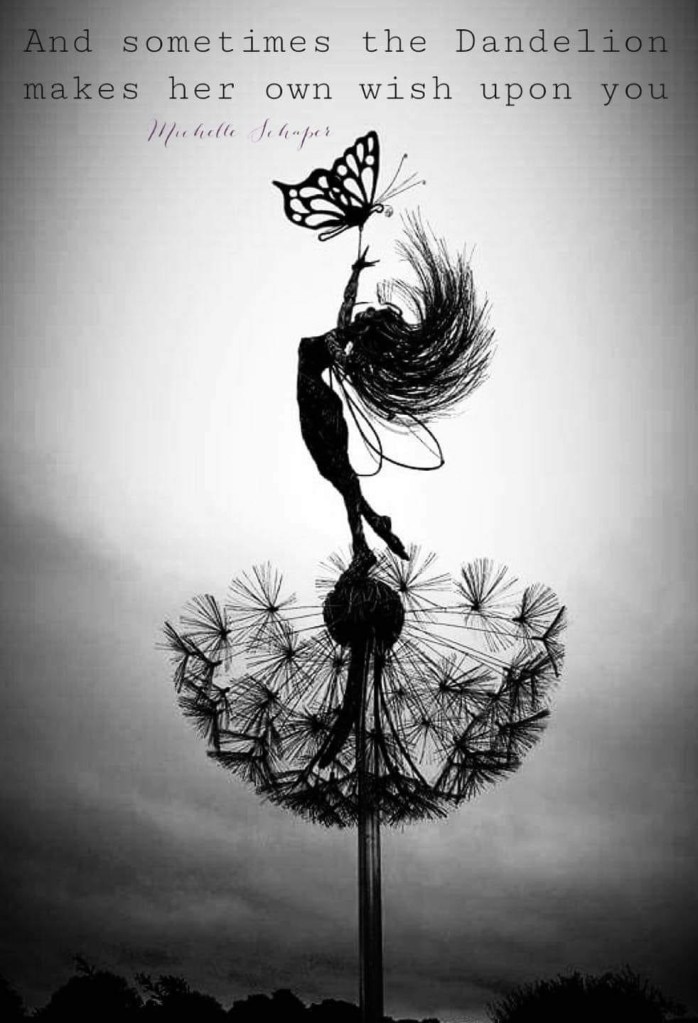 Yesterday a dandelion wish flew out of a drawer I was clearing and floated up into the air. I thought how pretty it was and how random to see it in the middle of the office, in January…. Then my friend Isy posted this…