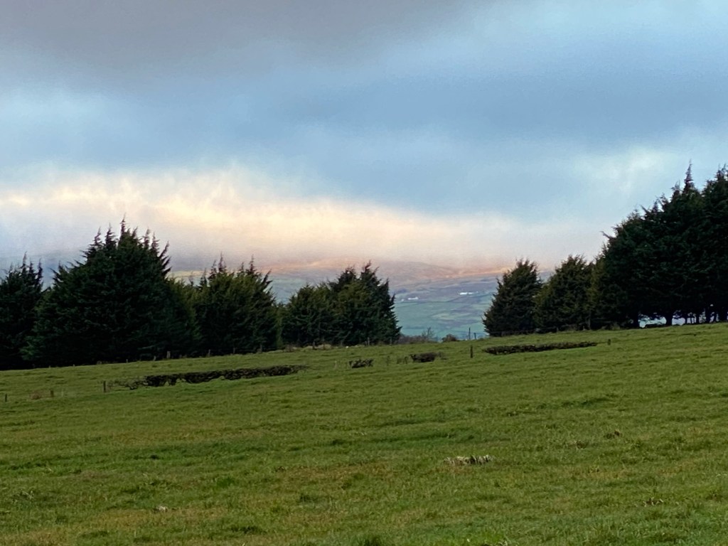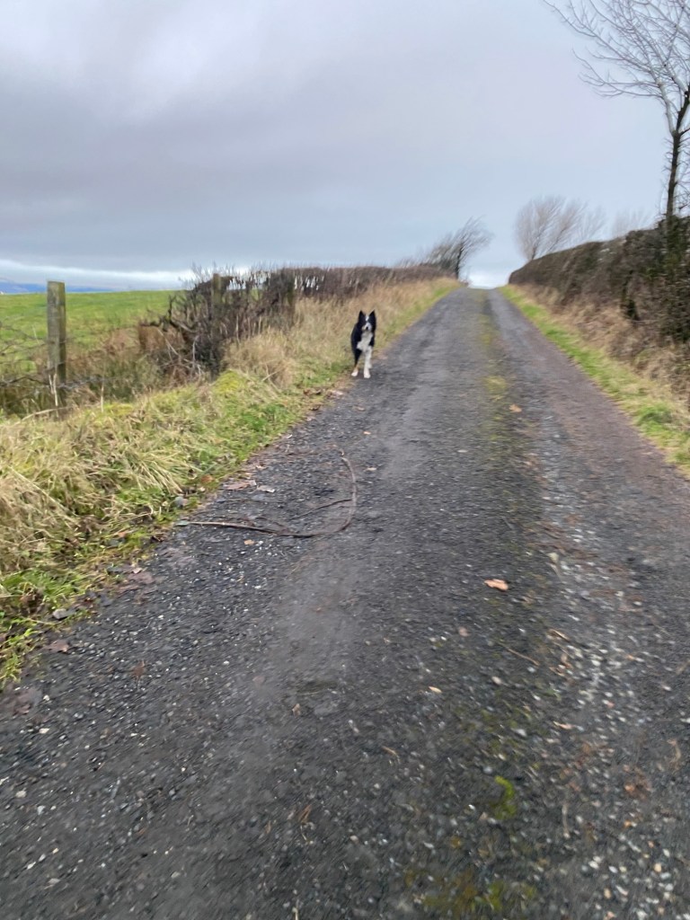 We then took the dogs up the hill for a walk. I took Calaidh. It’s meant to be wall to wall sunshine this morning. Not so…..