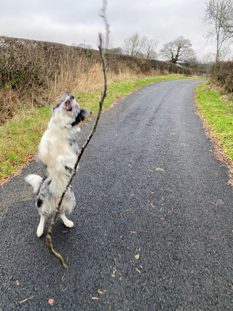 Look at the stick she ended up playing with… dogs should never play with sticks but I caught this crazy photo of her throwing it up in the air. (Could have been very dangerous…. 🙊)