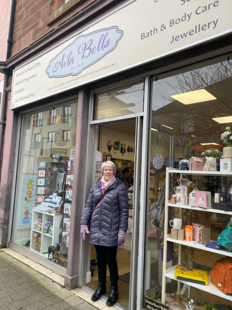 So mum had organised a wee surprise for me this morning… I was meeting some of my aunties and one of my cousins for coffee this morning. At such short notice, not everyone she asked could make it. We did some shopping first. Here’s mum outside Penicuik’s answer to the little gift shop. Love that I made her pose outside it! 😂