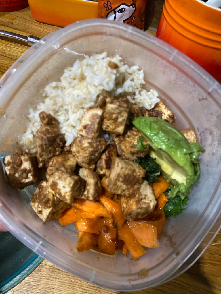 It’s called Peanut Marinated Smoked Tofoo Bhudda Bowl.