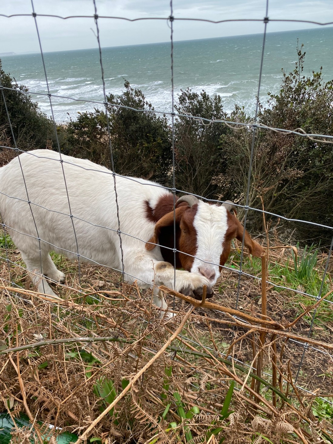 Then we came across the famous Bournemouth goats…. Who knew that was even a thing?!?!? They live on the cliffs to control the vegetation. this guy was giving us a high five!