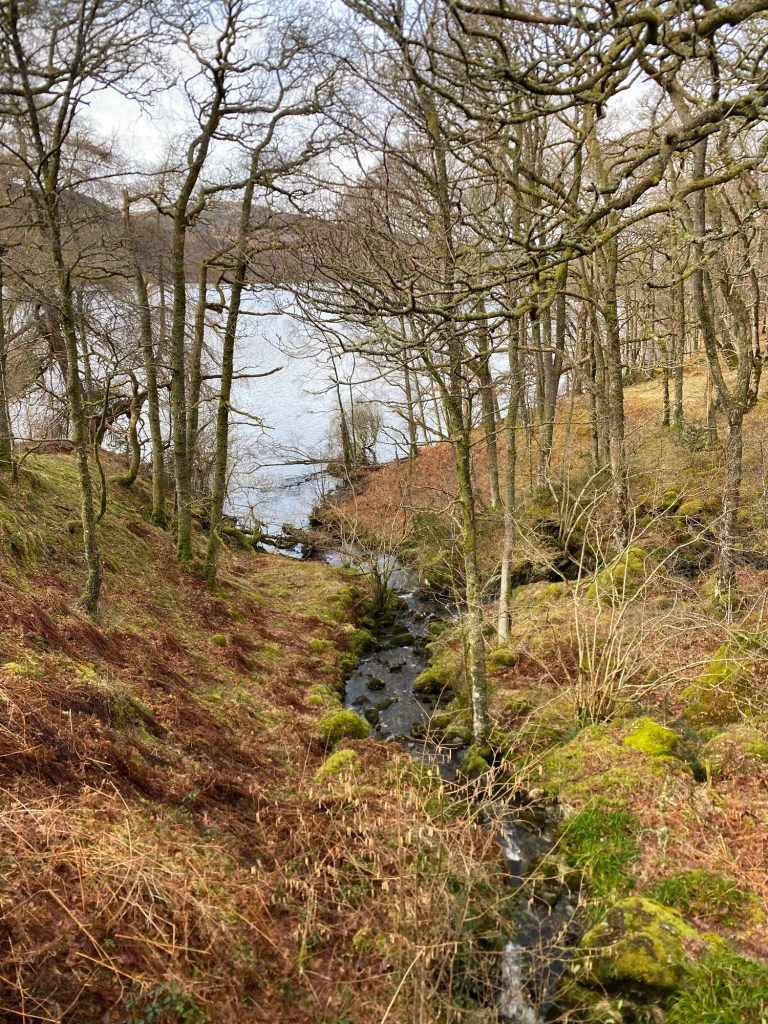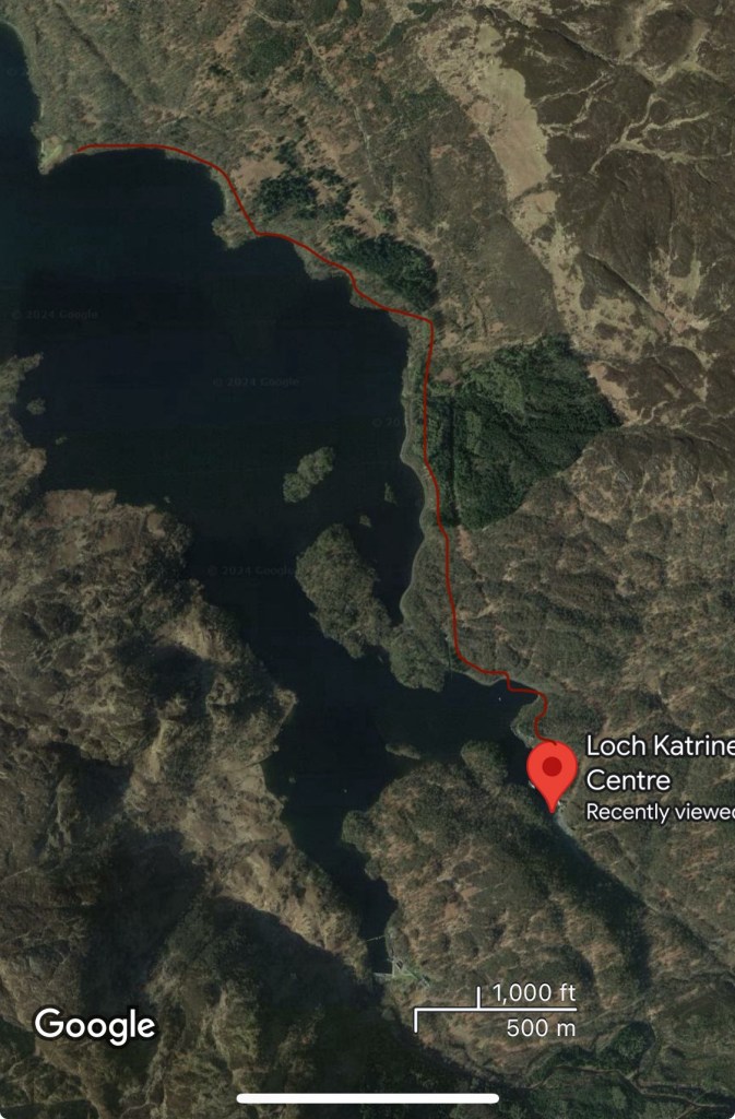 I had about two hours before the boat trip sailed, so I set the timer on my phone for 45 minutes to walk alongside the loch. I had plenty time to get back if I turned with the timer. Iāve marked the walk with a thin red line out to Brenachoile Point.