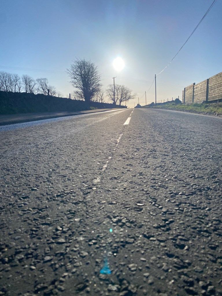It’s so quiet I stop the 3 of us for arty middle of road shot.