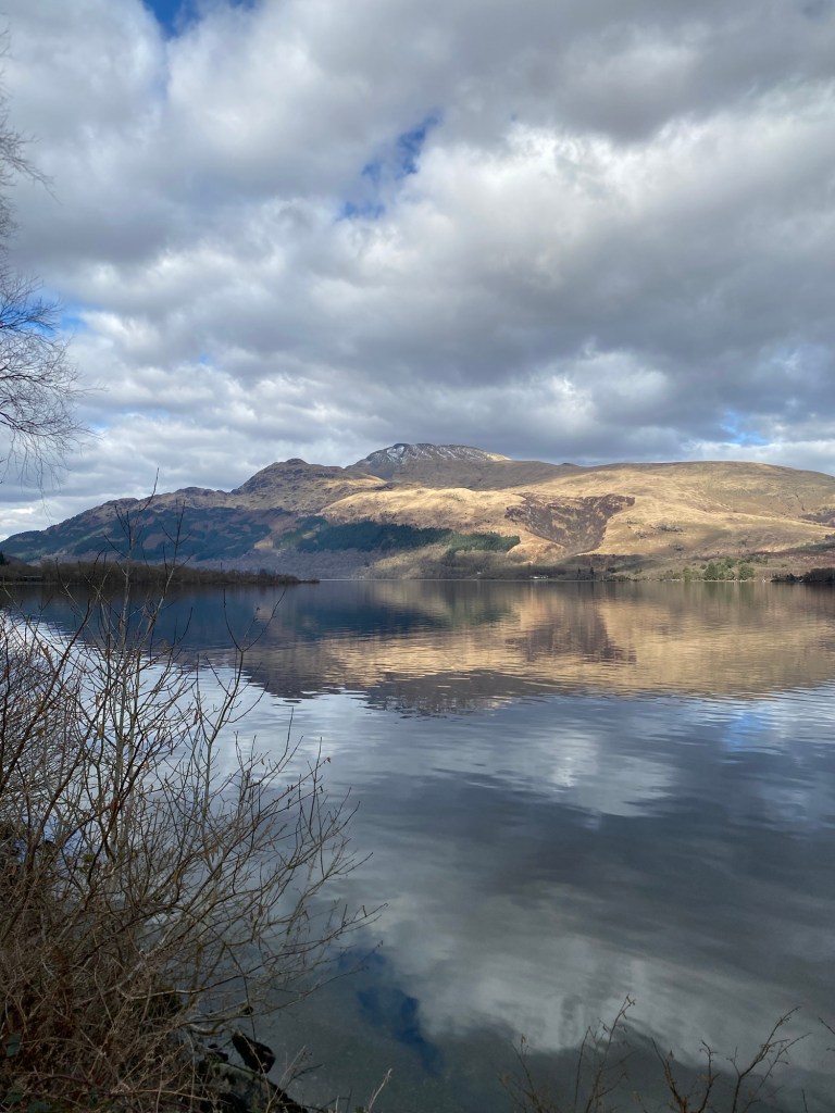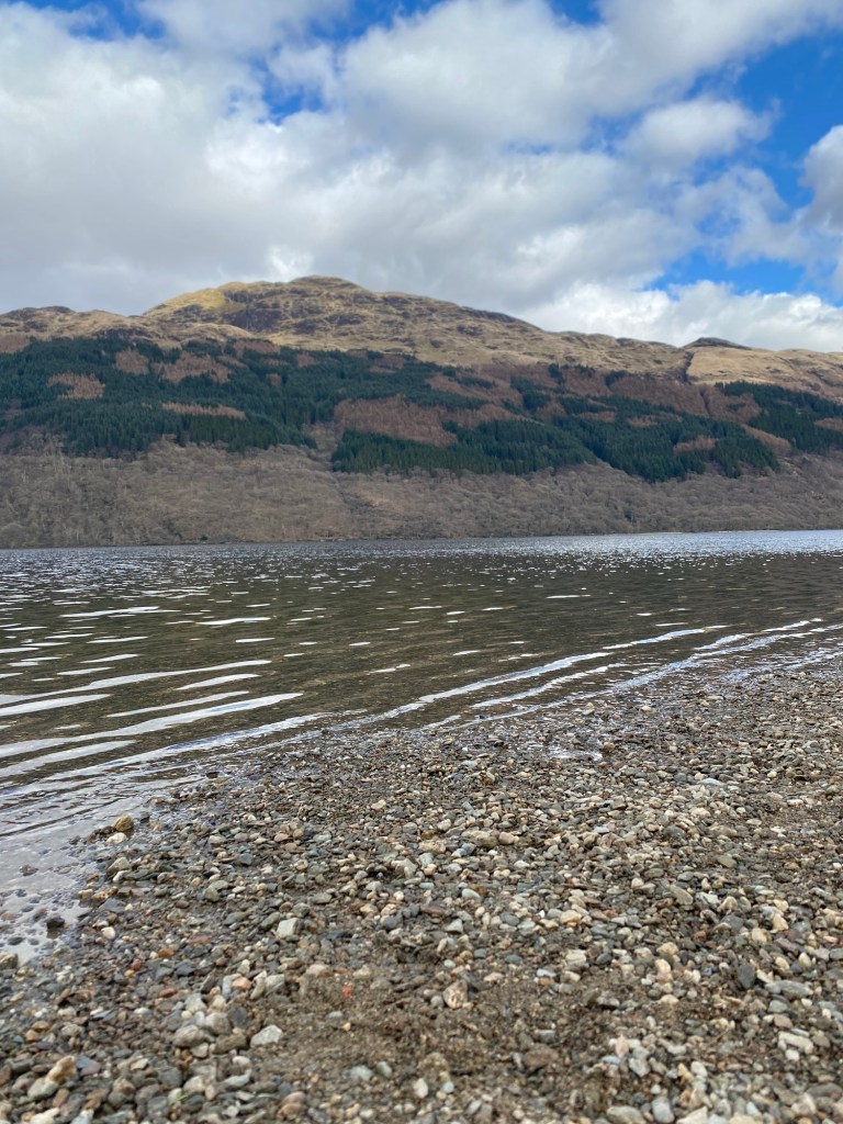 There were about 7 groups of people in front of us. I don’t know how long we stood but nothing was moving. Gayle was reading lots of comments on their Instagram page about the lack of parking and the trouble you could get into parking illegally…. We talked ourselves into worrying that the car wasn’t in a proper parking space and could be construed as in a passing place…. I went to take some photos of the loch.