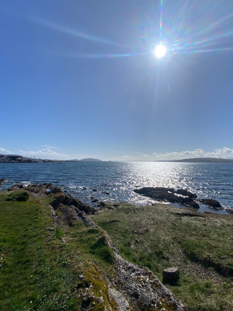 I could have sat there all day but the sea was calling. I walked up to the top of the promenade, turned back round and walked all the way back down to the Largs Marina where I’ve parked. I can’t bring myself to leave, it’s just so beautiful. I’m now perched on some rocks at the jetty!