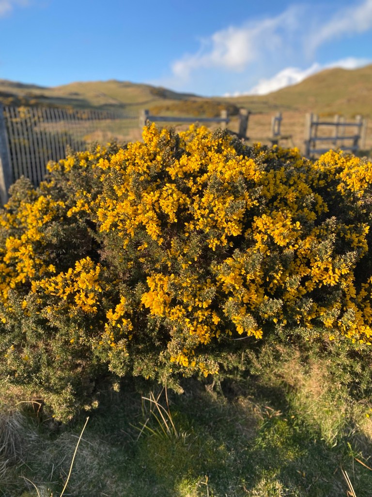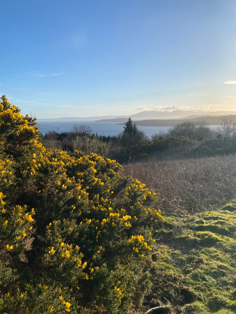 The gorse bush is almost in full bloom with the Isle of Arran on the horizon.
