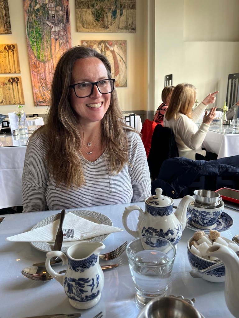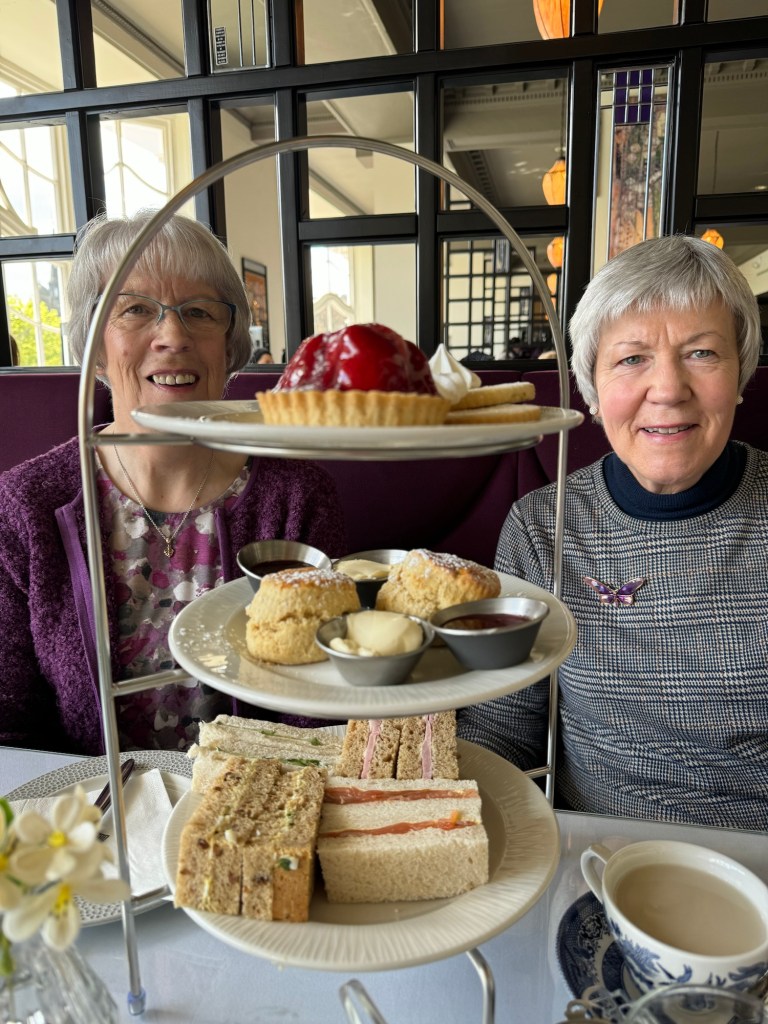 We had a sandwich with tea and cake in the Paton’s coffee shop. The radio was blaring, we could hardly hear to talk. It really wound up my anxiety for some reason…. Maybe it was that and the millions of people.