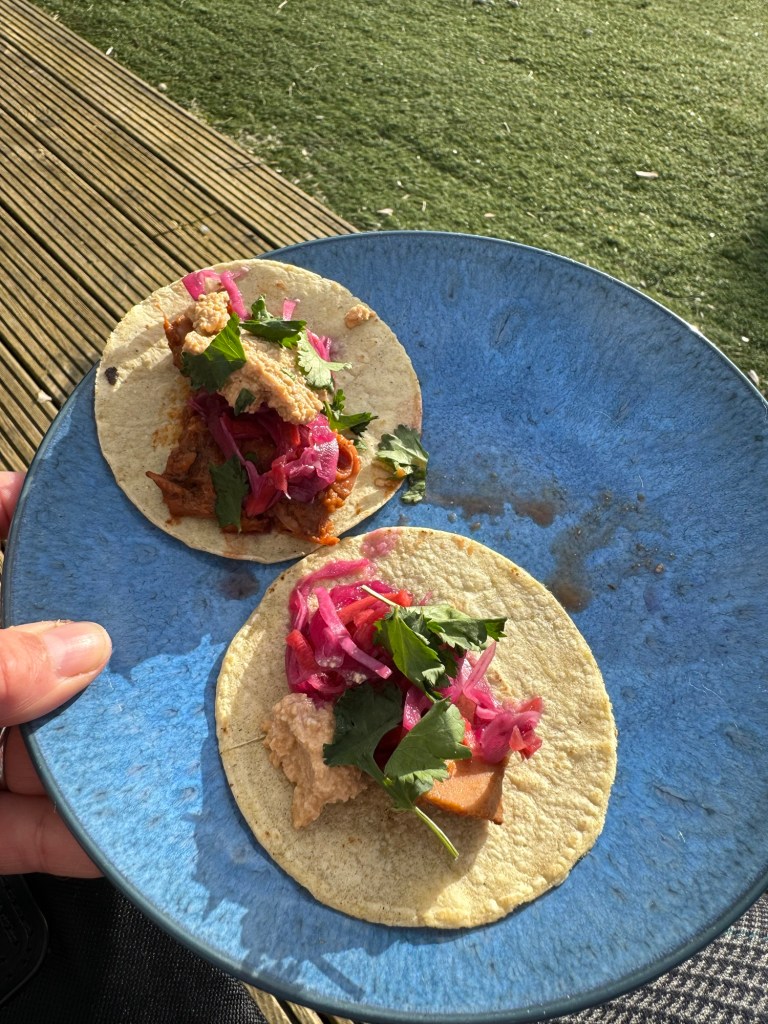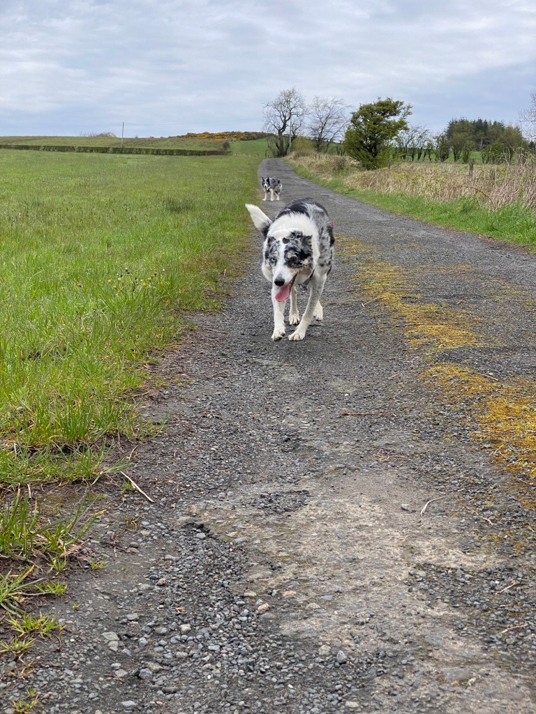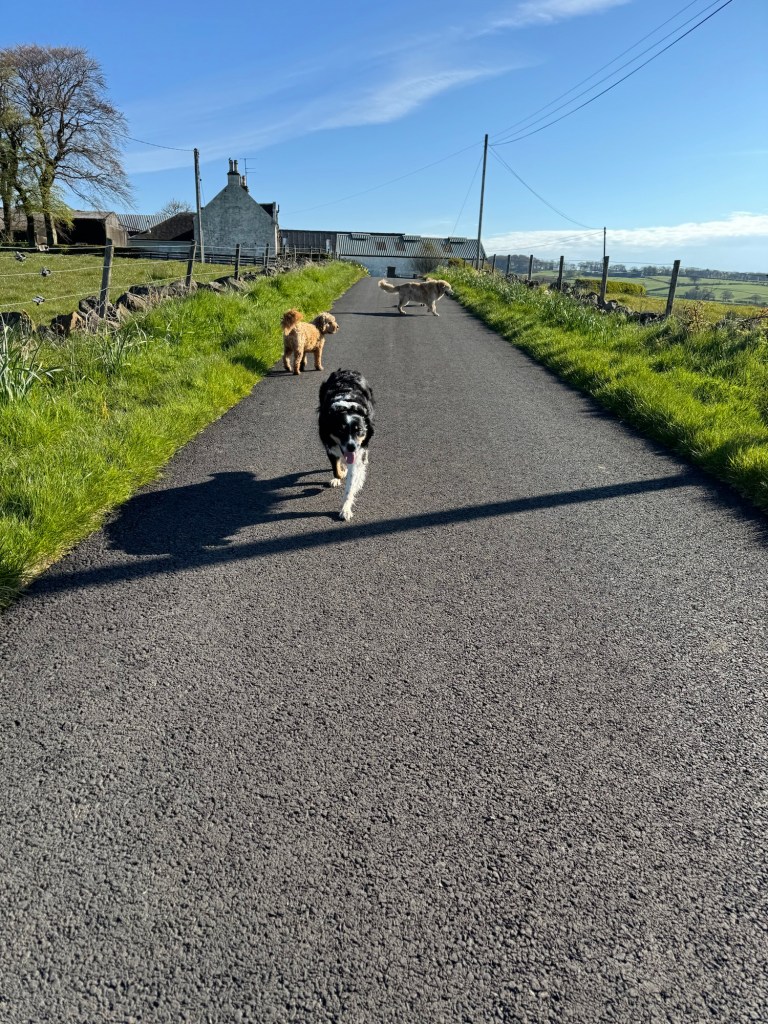 I’m sitting outside on a bench in the garden, pretending it’s warmer than it actually is… it’s 11.08am and I’ve already run 3 miles with Run Club, walked Bhru and Freya and then had a big field walk with Calaidh.