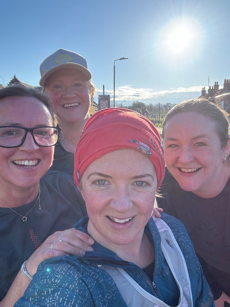 This morning’s run club, Lynsey, Elly, Rachel two doors down and my bright red face!!