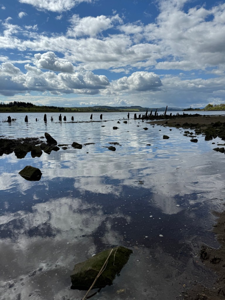 We walked down to the side of the Clyde and it was fairly calm too. There’s an old jetty out in the water, it was picturesque.