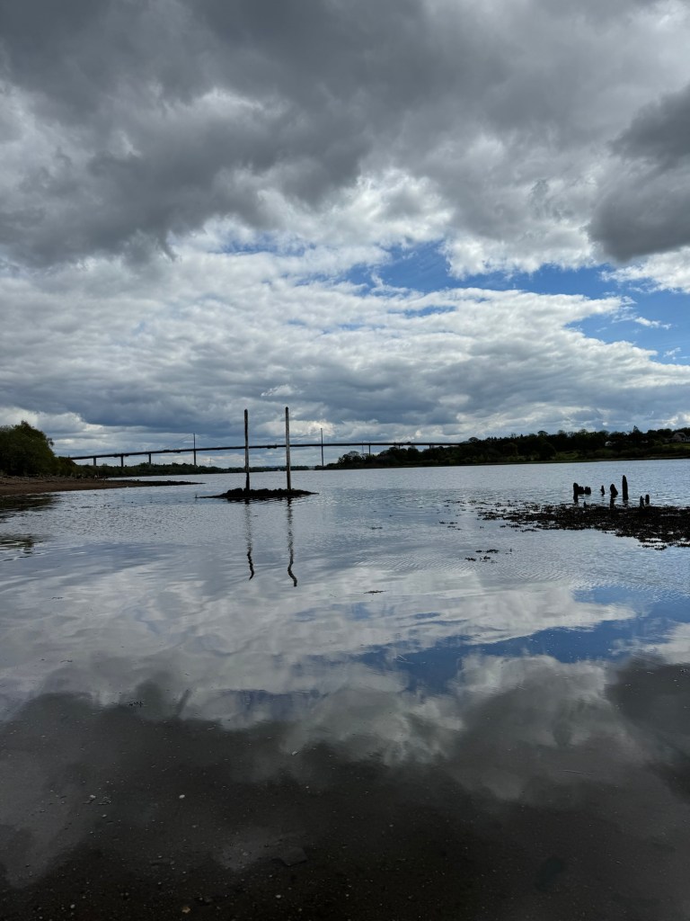 Looking back up to the Erskine bridge that we just drove over. if you zoom in to this shot, those two vertical posts are in the foreground and not part of the bridge. How random.