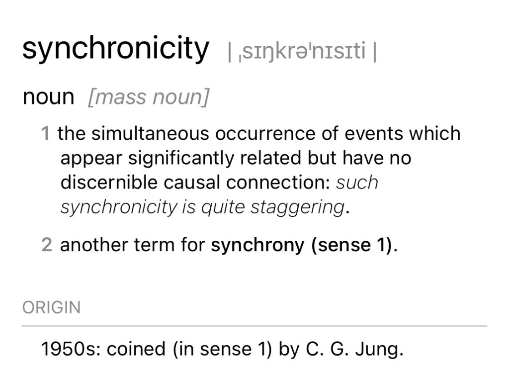Tonight I’m going to talk about synchronicity. It’s been slapping me in the face all day and I love it.