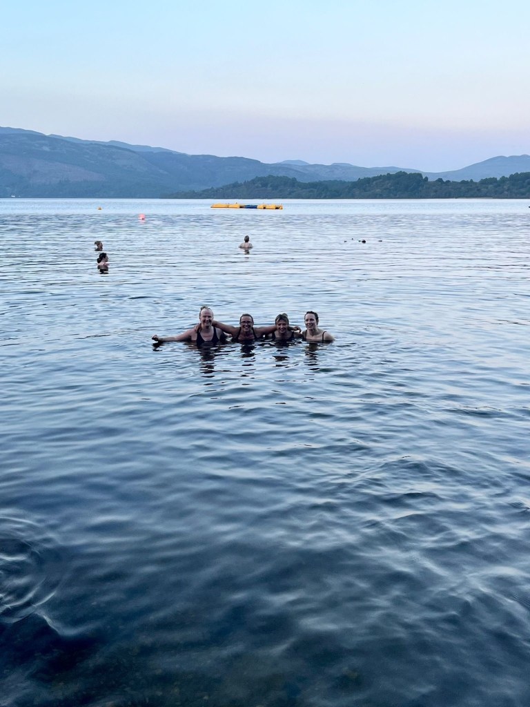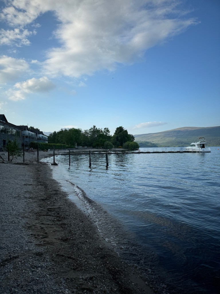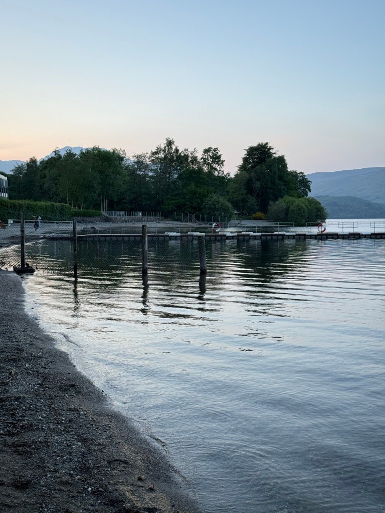 I went to The Realignment Project with 3 of the girls I’ve been running with…. Gillian, Lynsey and Rachel two doors down. It was held on Luss Beach on the banks of Loch Lomond….Which was looking particularly pretty last night, after a beautiful day.