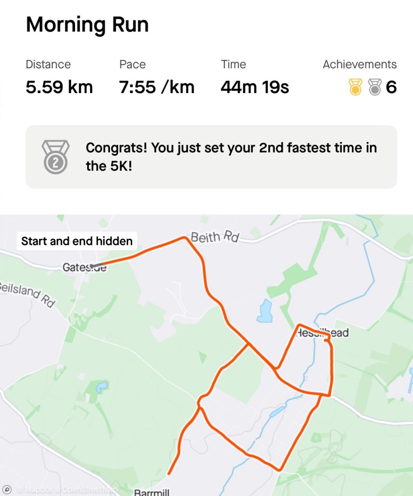Sunday run club met at 7am at Gillian’s house. My Strava app thinks I flew along as I forgot to switch it off for the drive home.
