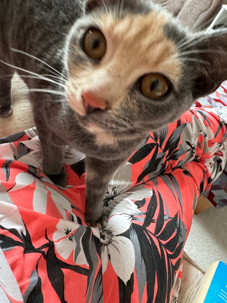 I came back to Helen’s and got ready. Here I am sitting with my other goddaughter’s beautiful kittens.