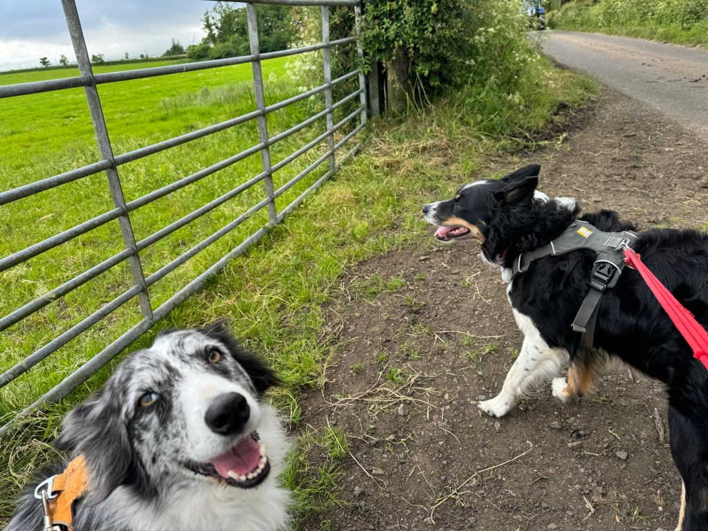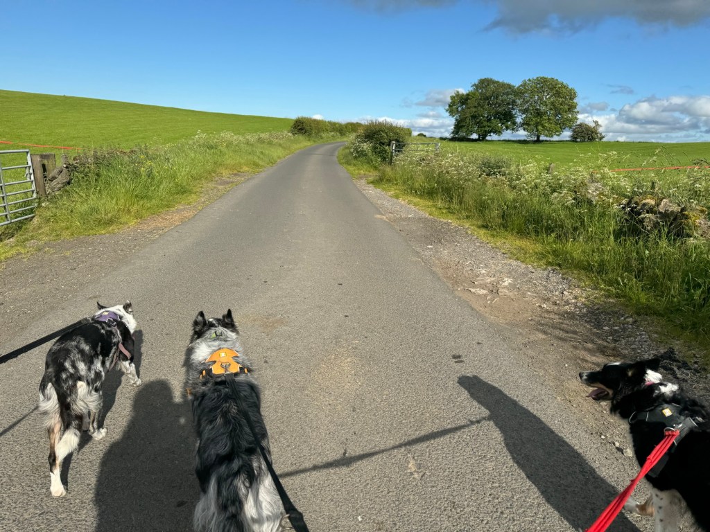I tried to get photos of the dogs being so good as the terrifyingly huge tractors passed us but I was embarrassed that the drivers might wonder why I was taking pics…. Claire said don’t be daft, it’s not like you’ll see them again…. I replied with, yeah only another 100 times tonight.