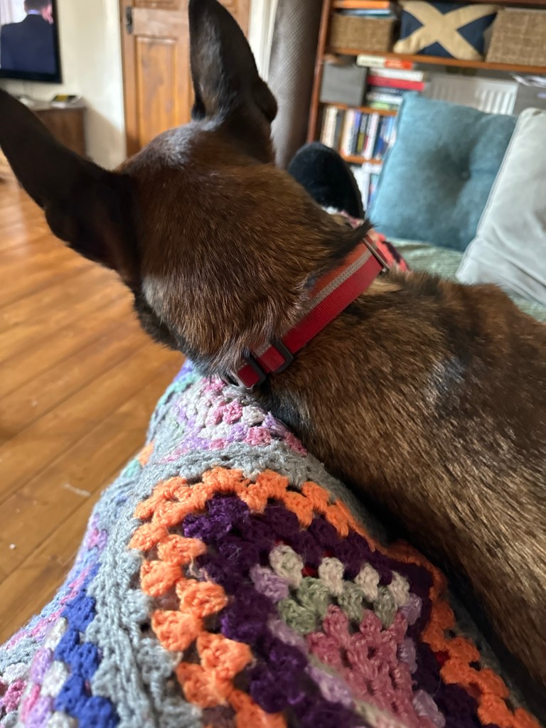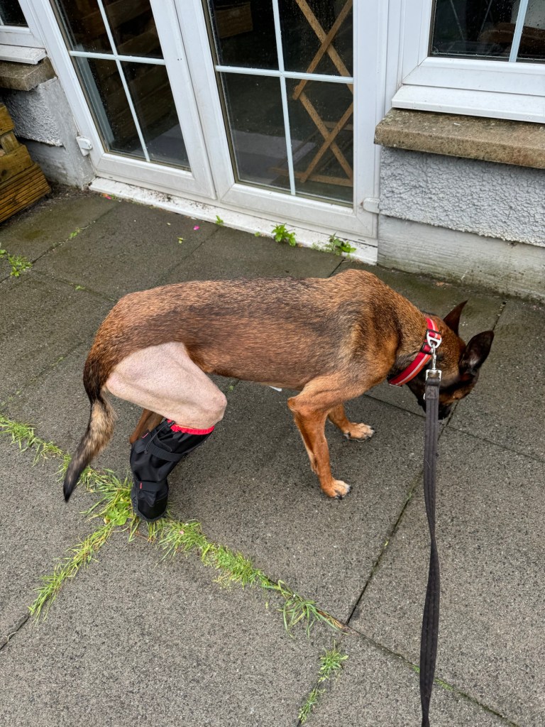 The hair on her back leg is starting to grow back in. It feels a lot less jaggy, a bit like a fluffy crew cut now. 🥰