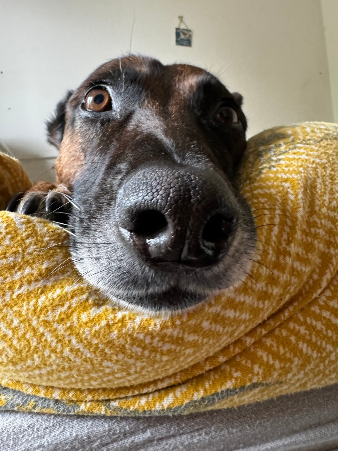 I’ve moved outside for a bit, while the sun is shining. Freya and Khaleesi are at my feet.