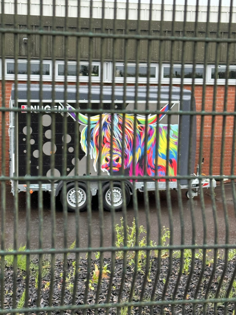Did spot this colourful coo on the side of a trailer in JS Montgomery Tractorās yard.