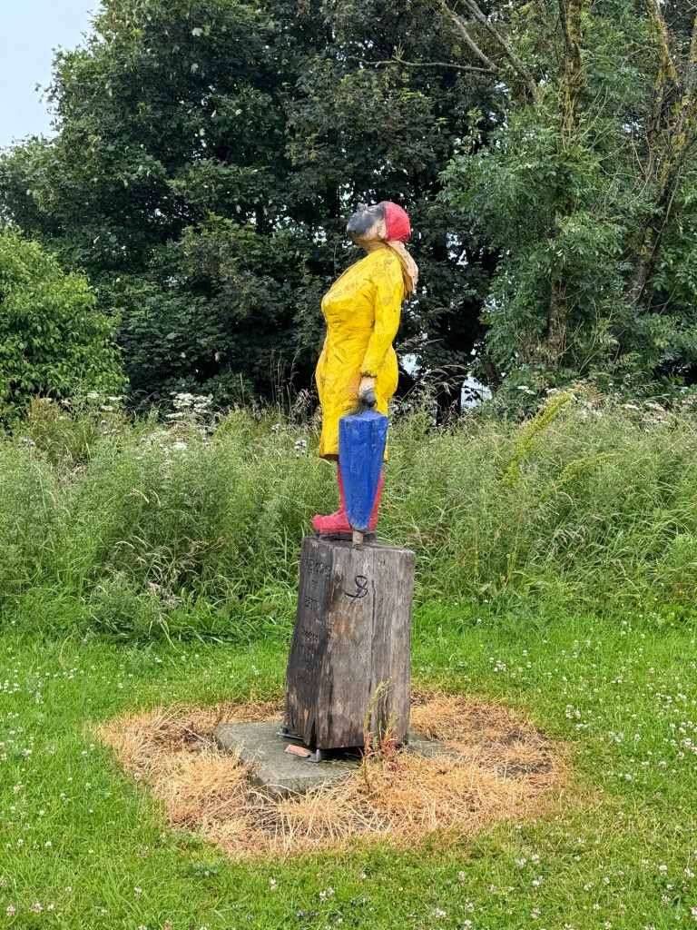 This statue says Welcome to Beith. Itās carved of wood and I think sheās called Johanna⦠sheās looking to the skies wondering when summer will come just like the rest of us. š