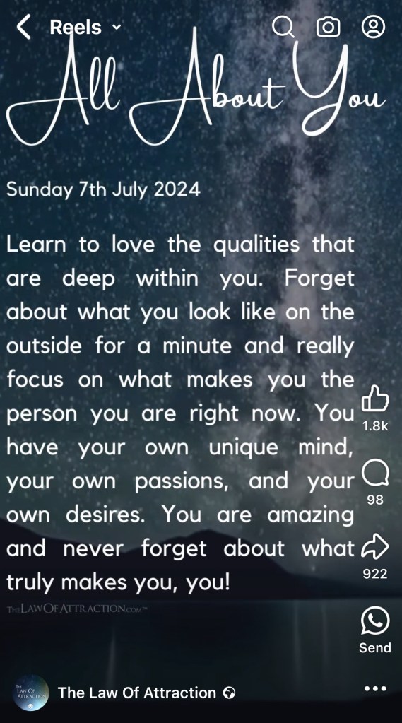 I think I’ve said before that I have my FB feed set up with all things positive… anything that doesn’t align is deleted. It’s harsh but I know what I need to keep my grounded.